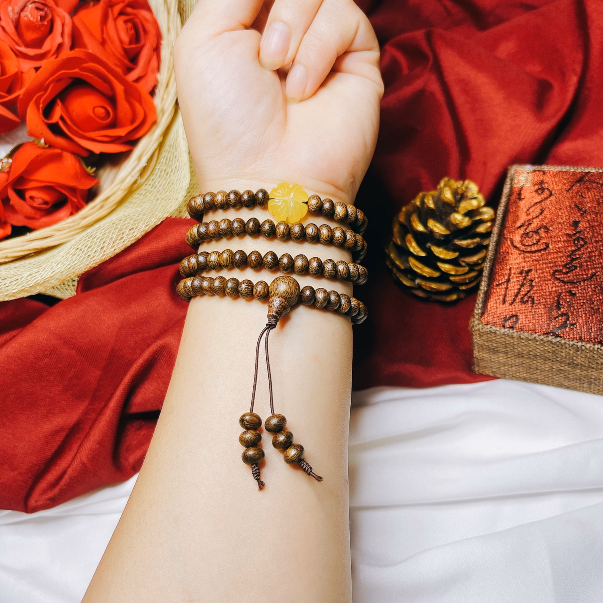 Vòng Tay Trầm Hương Tốc Dẹt Phối Cỏ Bốn Lá Thiên Nhiên – Thắng Giang