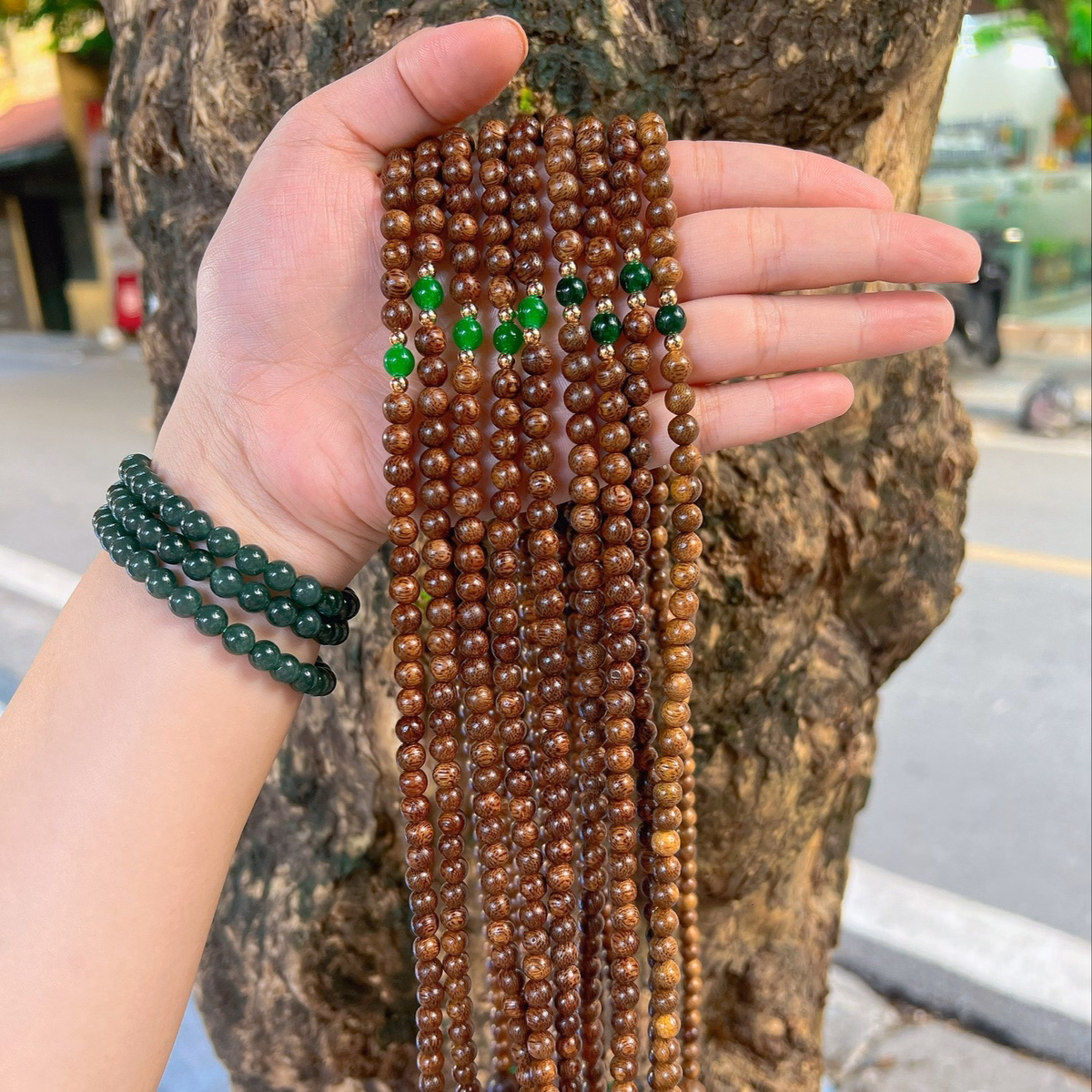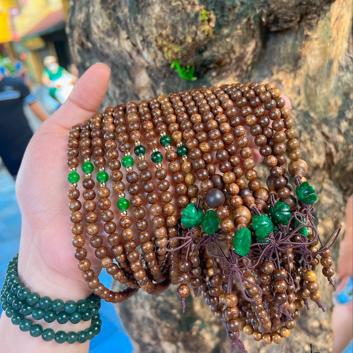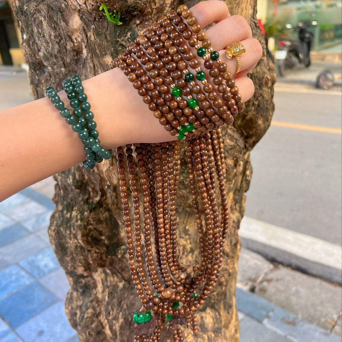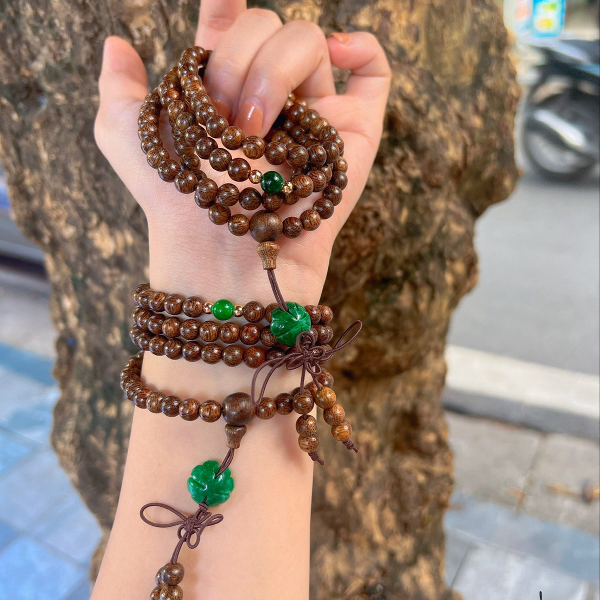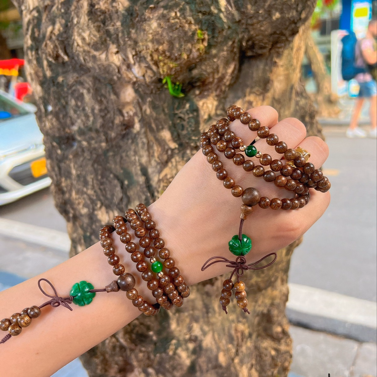 Vòng Tay Trầm Hương Tốc Phối Cỏ Bốn Lá Cẩm Thạch Xanh Thiên Nhiên – Thắng Giang