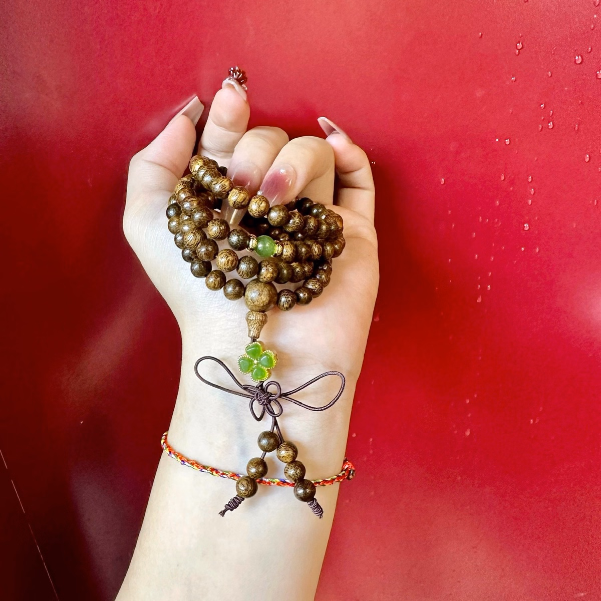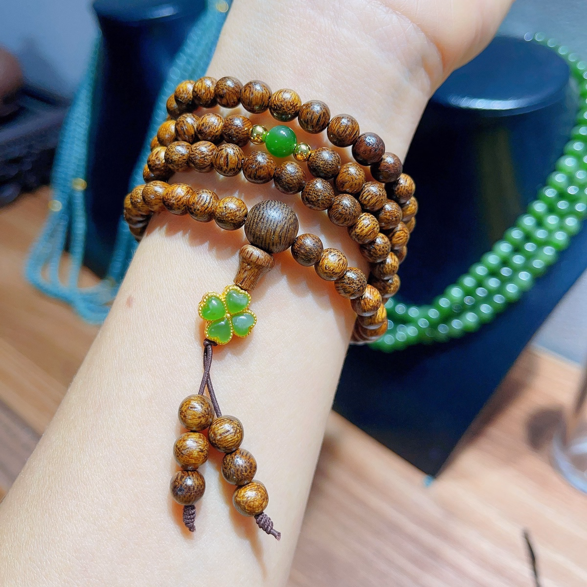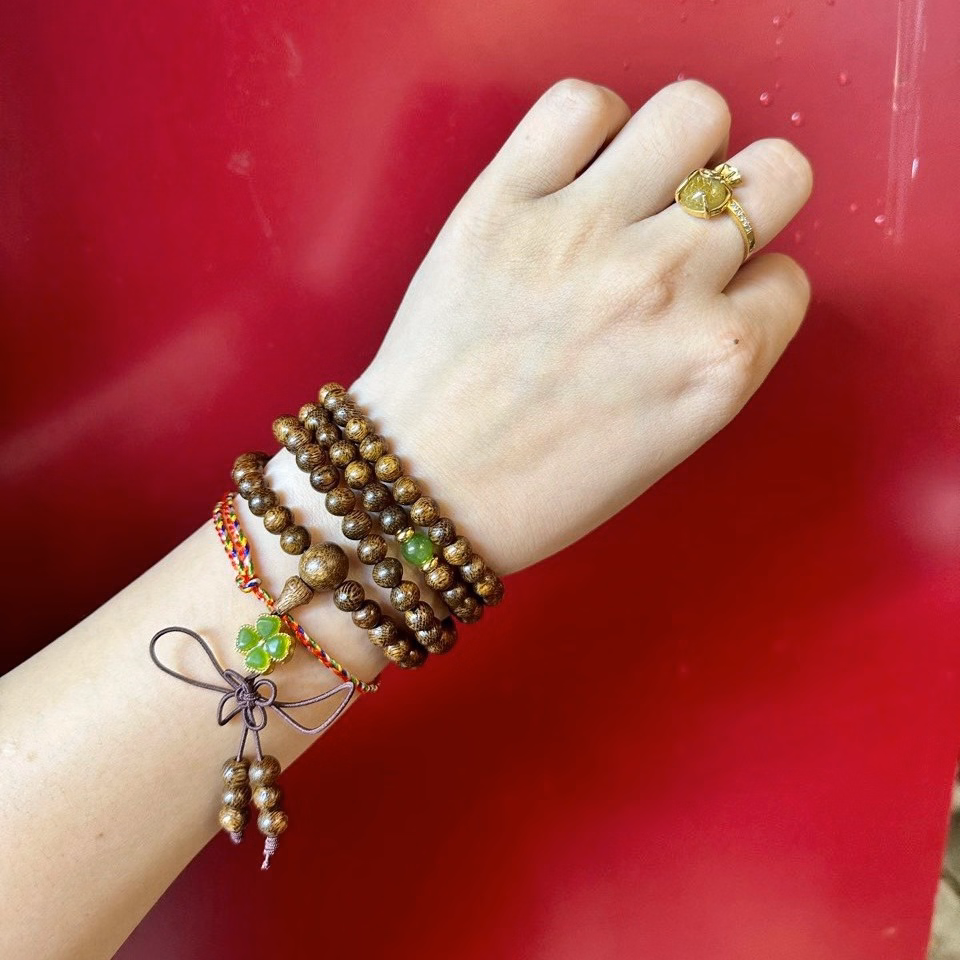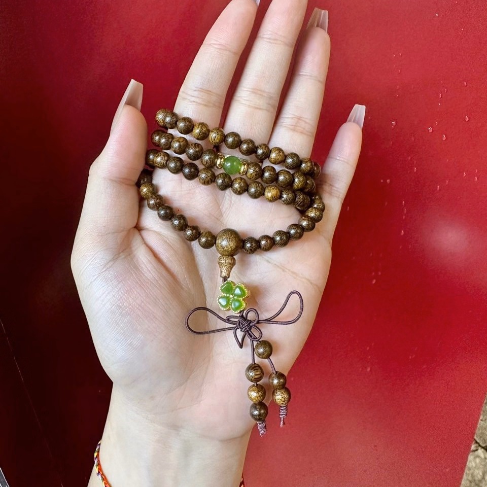 Vòng Tay Trầm Hương Tốc Phối Cỏ Bốn Lá Charm Tĩnh Điện – Thắng Giang