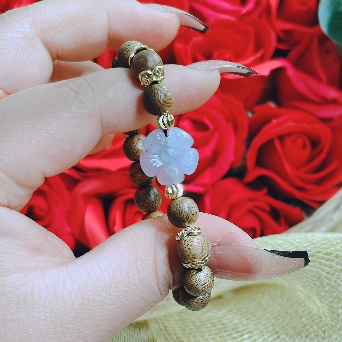 Vòng Tay Trầm Hương Tốc Phối Hoa Mai Ngọc Cẩm Thạch Phớt Tím Thiên Nhiên – Thắng Giang