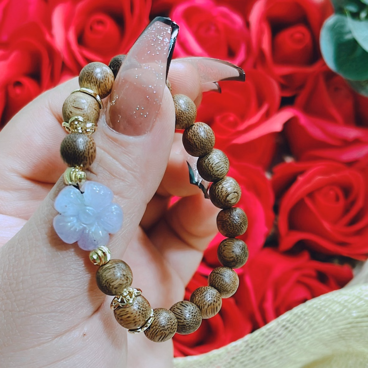 Tên sản phẩm: vòng tay trầm hương tốc phối hoa mai ngọc cẩm thạch phớt tím thiên nhiên – thắng giang
