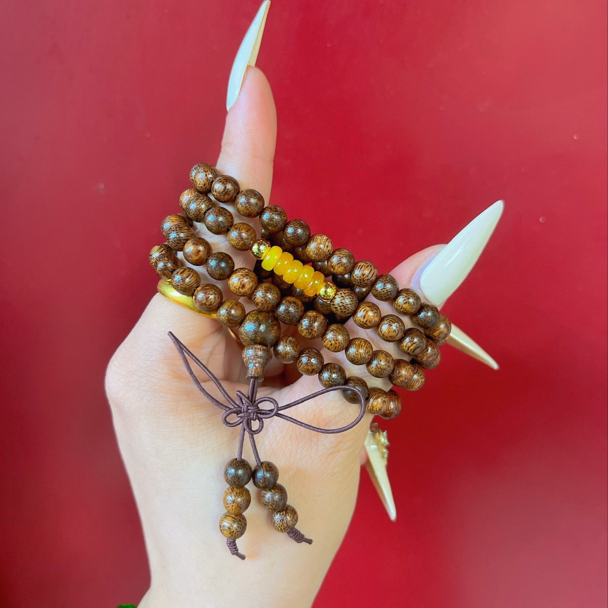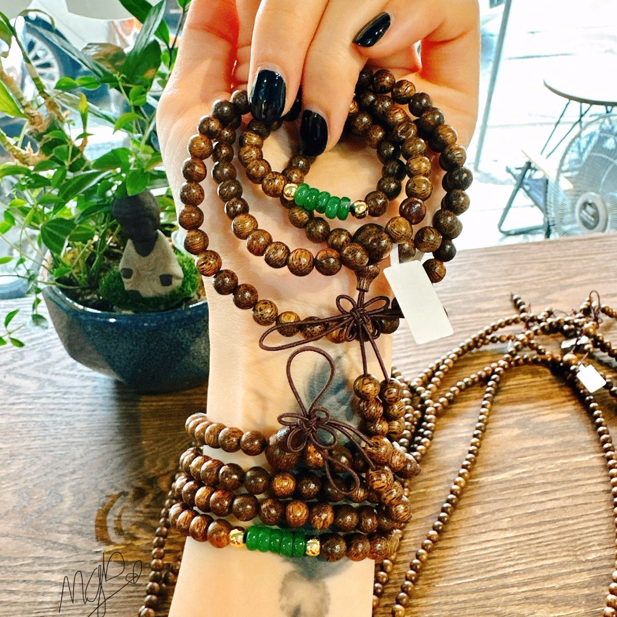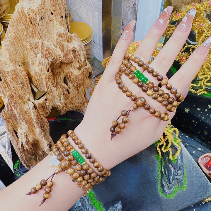 Tên sản phẩm: vòng tay trầm hương tốc phối ngũ điếu cẩm thạch mini thiên nhiên – thắng giang