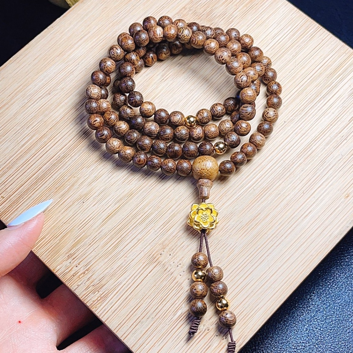 Chuỗi hạt 108 là biểu thị cho cầu chứng 108 Pháp Tam Muội – Đoạn trừ 108 loại phiền não trên đời, tạo sự bình yên trong tâm hồn, không còn bị xáo trộn bởi thị phi. Chuỗi hạt 108 là pháp khí tu hành, chứa đựng công đức giúp sinh tài khí, cải thiện phong thủy.