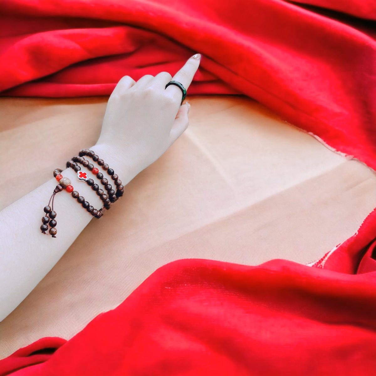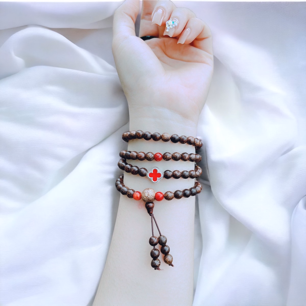Vòng Tay Trầm Hương Tốc Thiên Nhiên Phối Charm Cỏ Bốn Lá Bạc – Thắng Giang