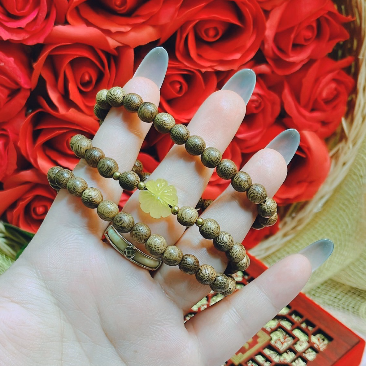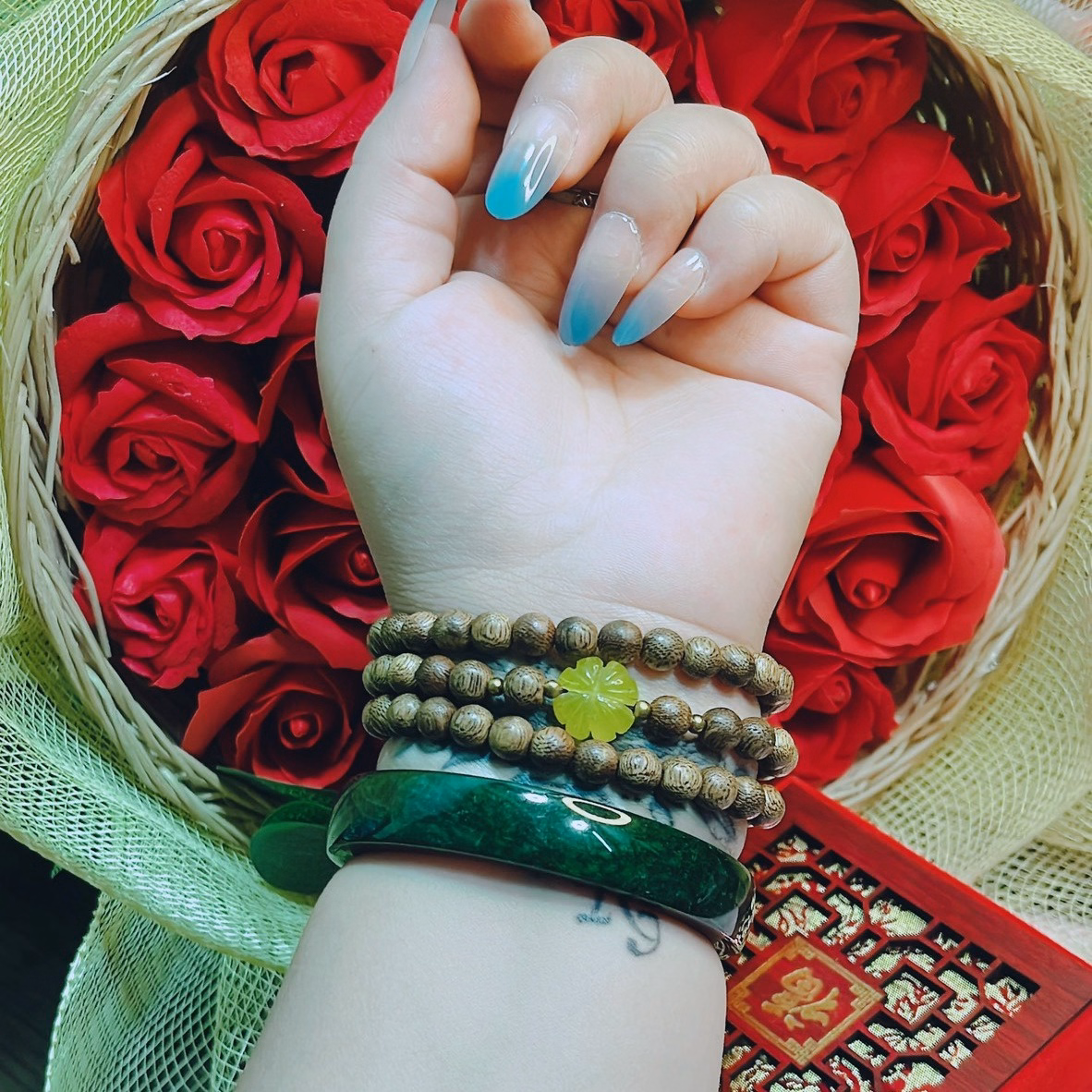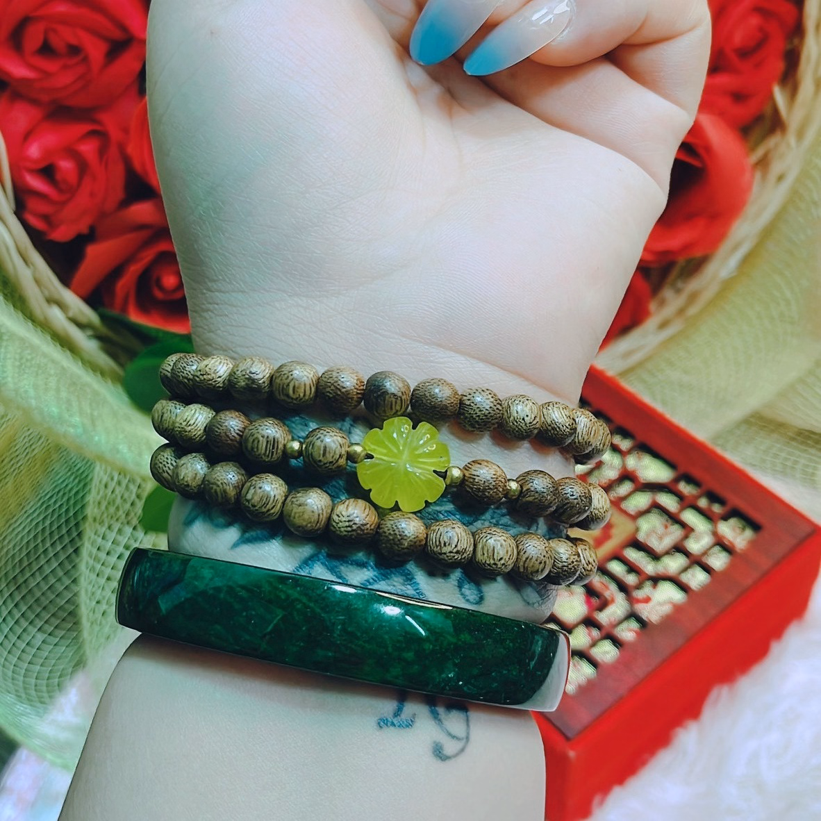 Vòng Tay Trầm Hương Tốc Thiên Nhiên Phối Cỏ Bốn Lá Ngọc Cẩm Thạch – Thắng Giang