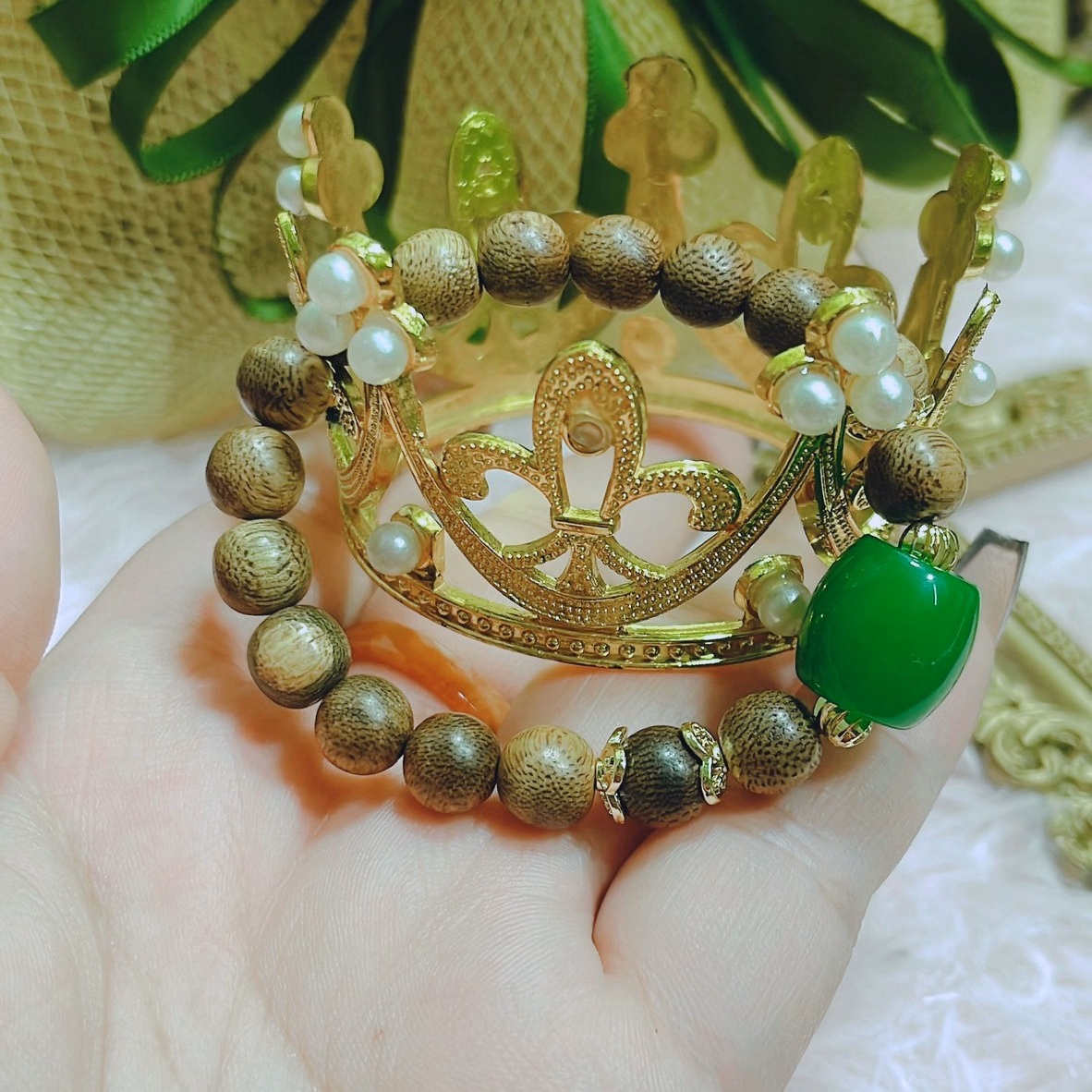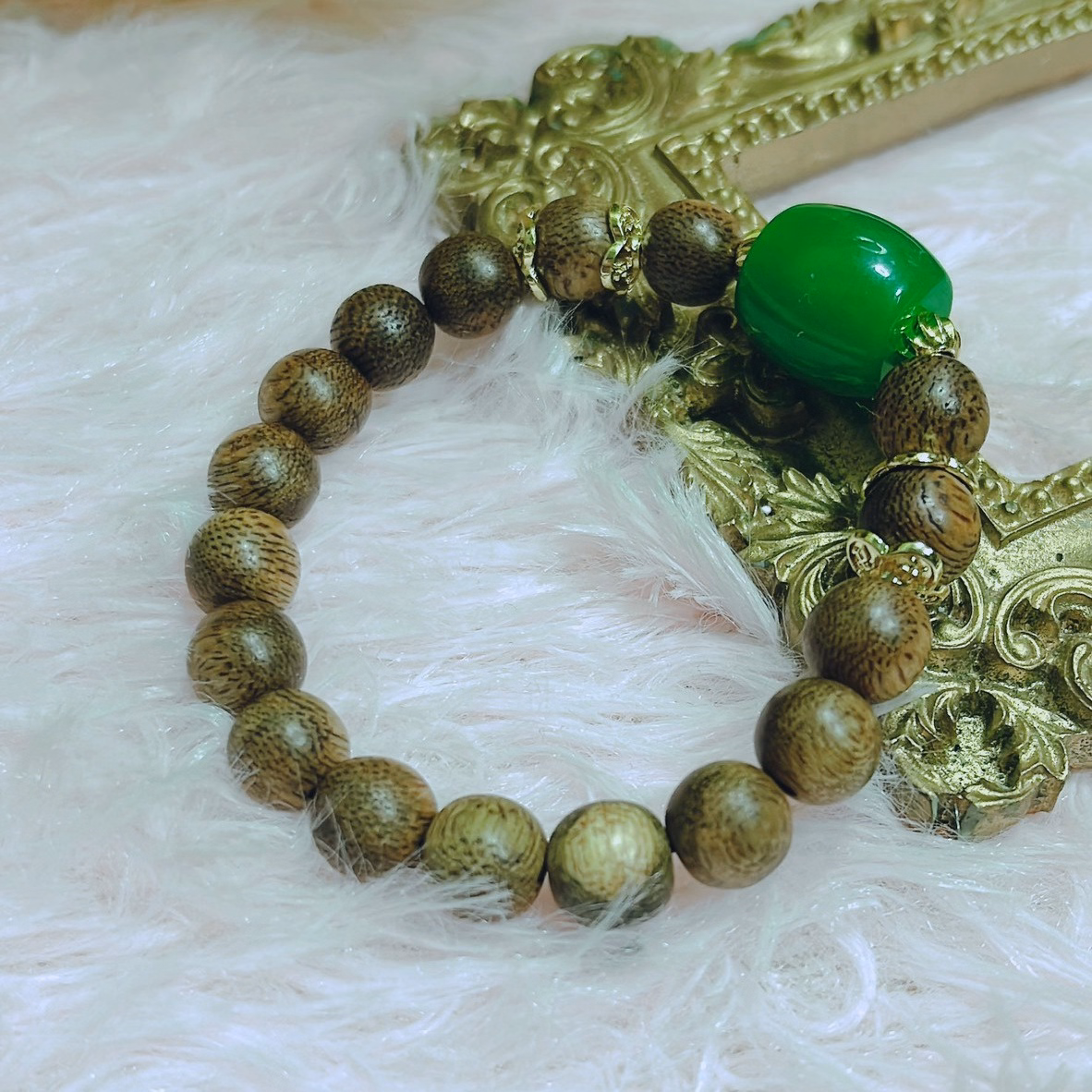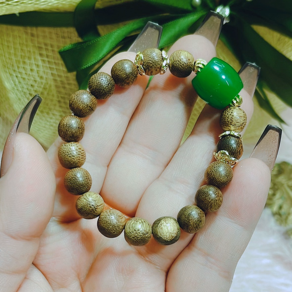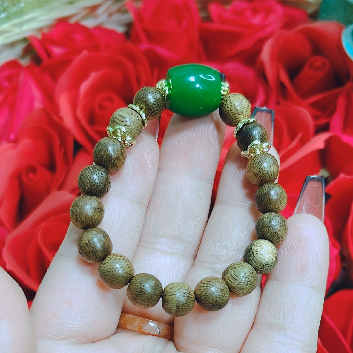 Vòng Tay Trầm Hương Tốc Thiên Nhiên Phối Lu Thống Cẩm Thạch – Thắng Giang