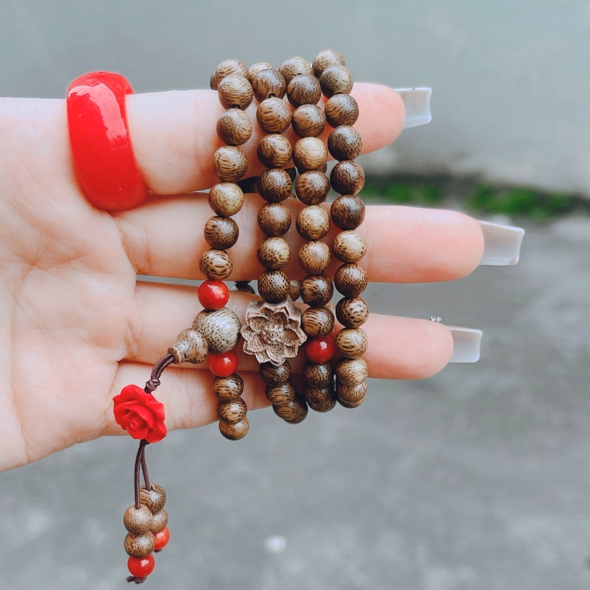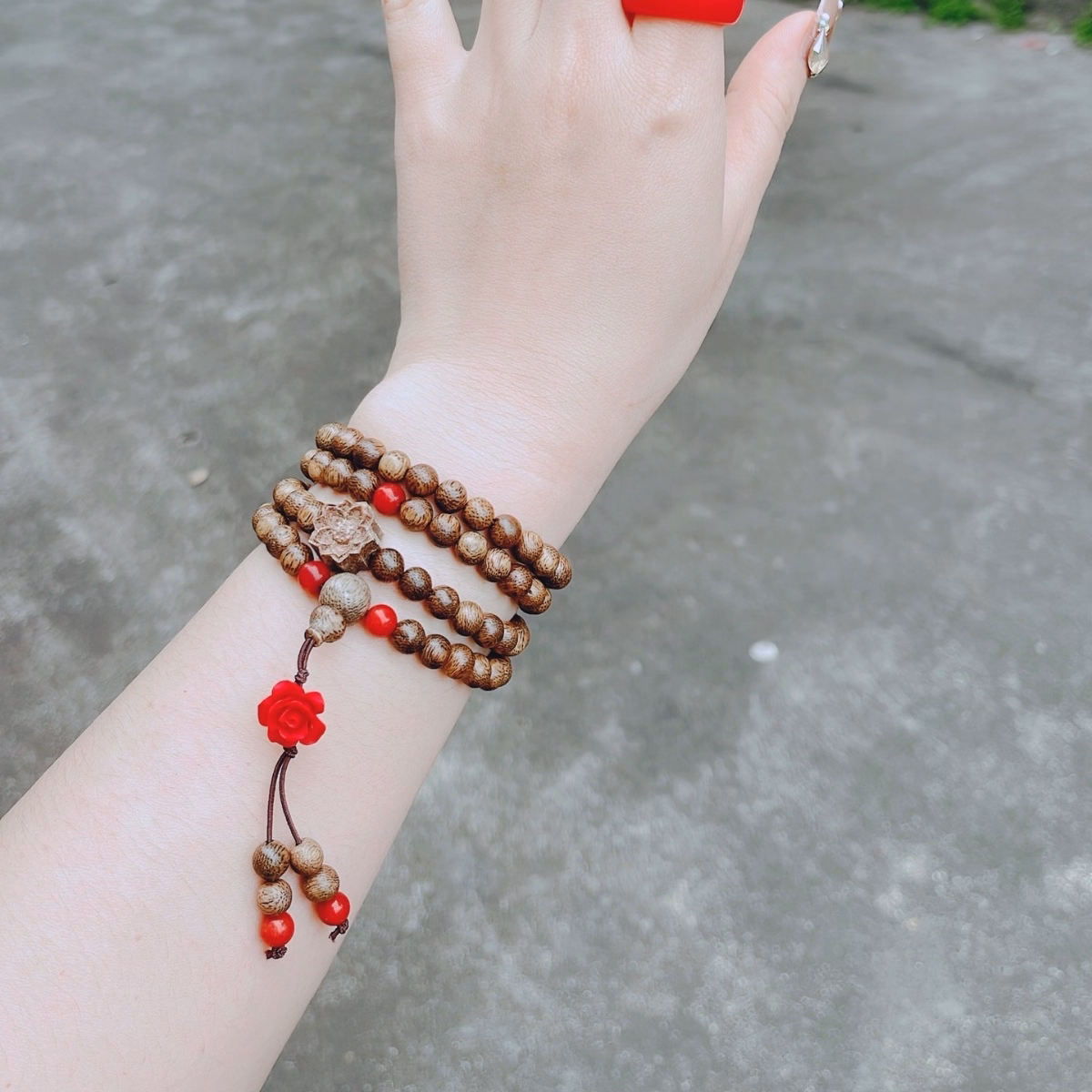 Vòng Tay Trầm Hương Tốc Thiên Nhiên Phối Sen, Hoa Mẫu Đơn Chu Sa Đỏ – Thắng Giang