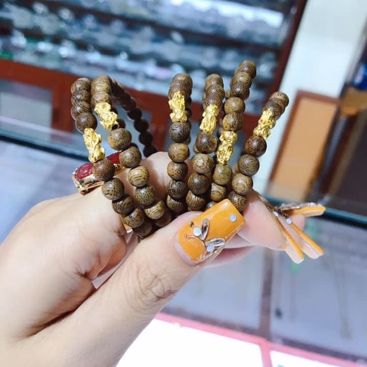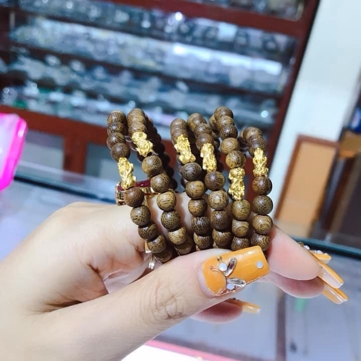 Vòng Tay Trầm Hương Tốc Thiên Nhiên Phối Tì Hưu Vàng Ta 24 Kara – Thắng Giang