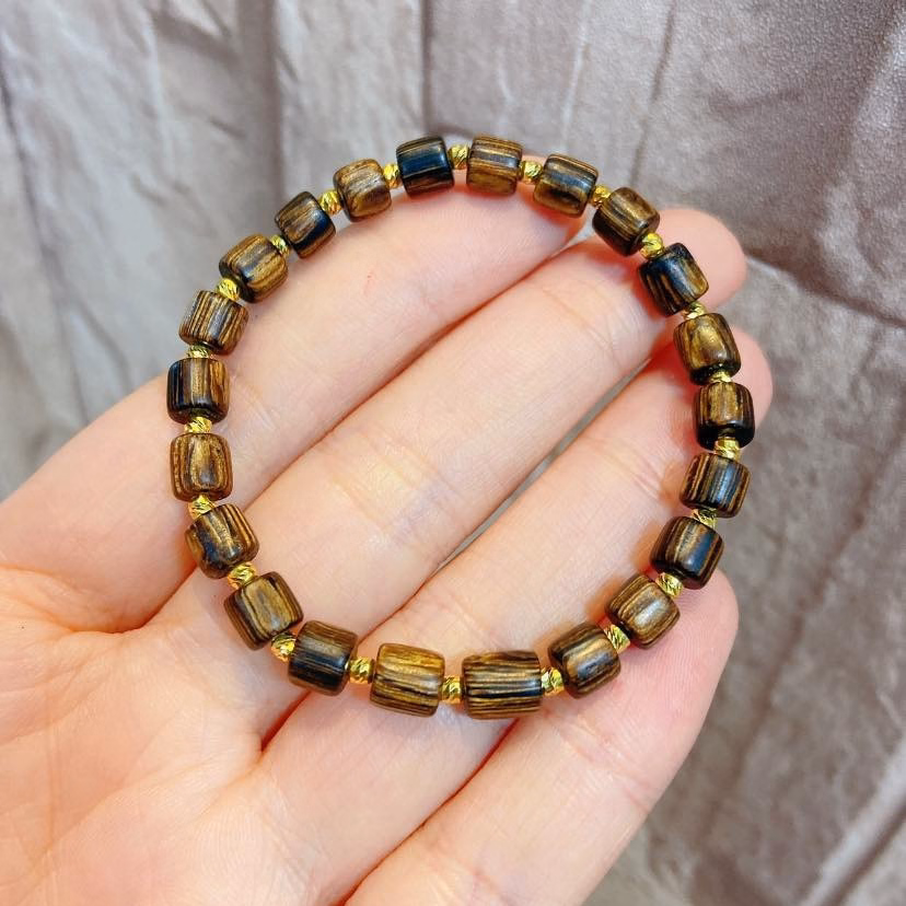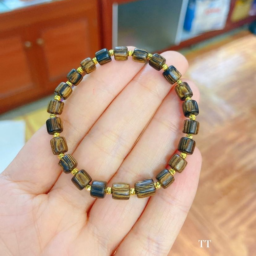 Tên sản phẩm: vòng tay trầm sánh chìm dáng trúc phối bi xi vàng – thắng giang