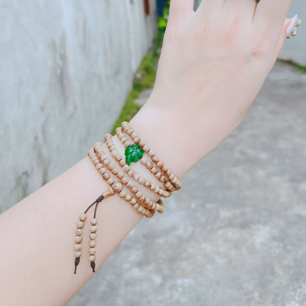 Vòng Tay Trầm Tốc Rừng Lào Thiên Nhiên Phối Cỏ 4 Lá Cẩm Thạch 216 Hạt – Thắng Giang