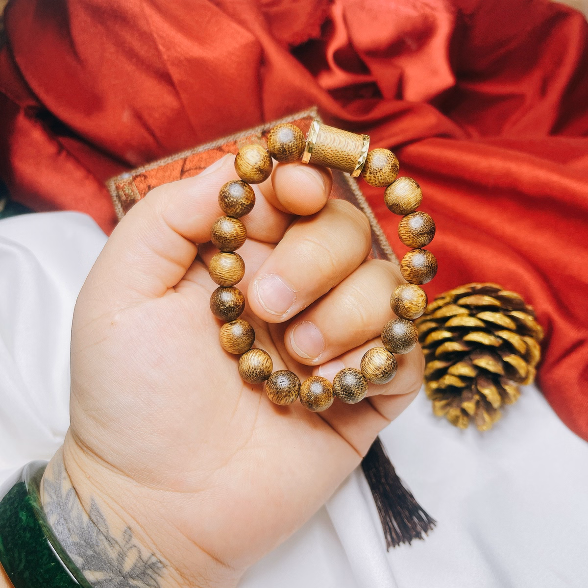 Tên sản phẩm: vòng tay trầm tốc vân phối lu bọc xi vàng thiên nhiên – thắng giang