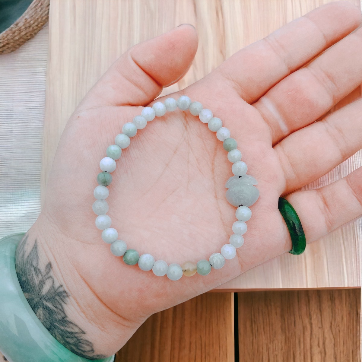 [Dây] Vòng Tay Đá Ngọc Bích Mix Charm – Ttvtdnb