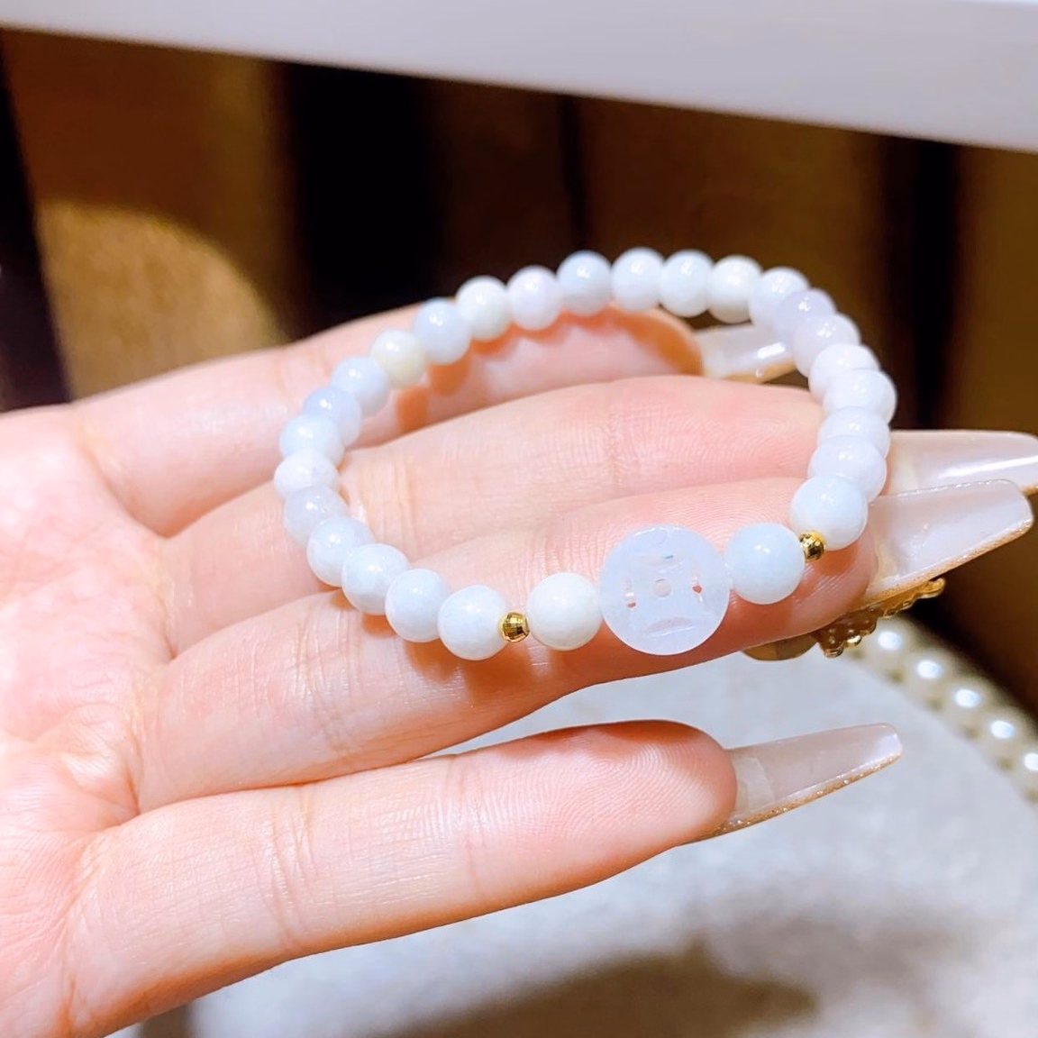Vòng Tay Xu Kim Tiền Ngọc Cẩm Thạch Trắng Thiên Nhiên – Thắng Giang
