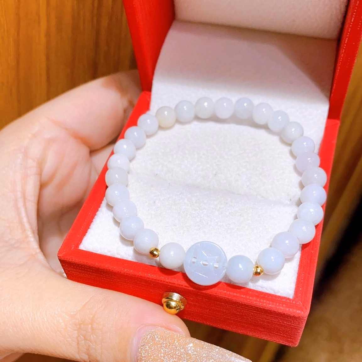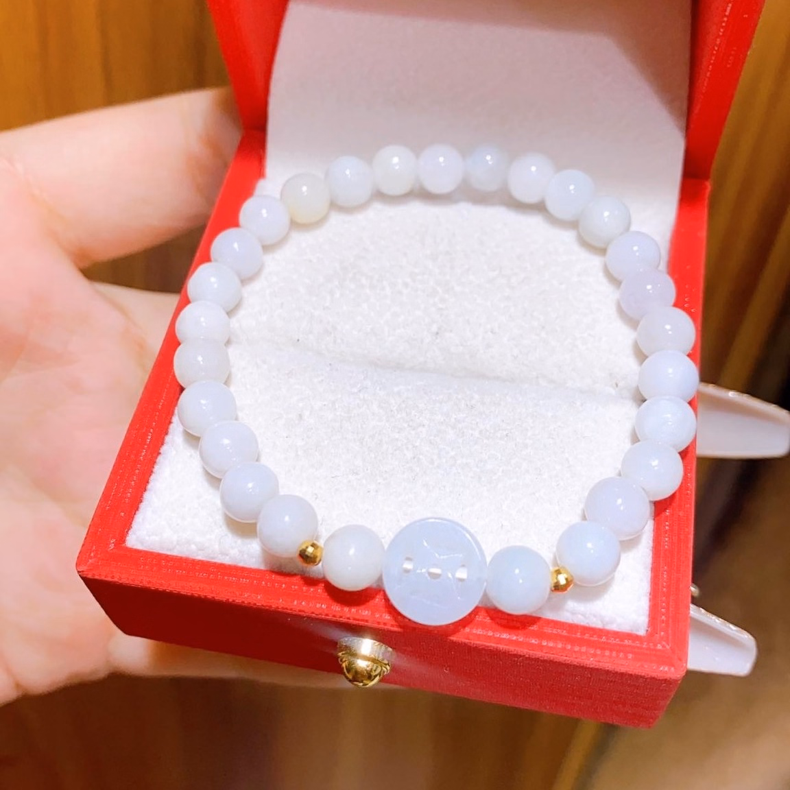 Tên sản phẩm: vòng tay xu kim tiền ngọc cẩm thạch trắng thiên nhiên – thắng giang